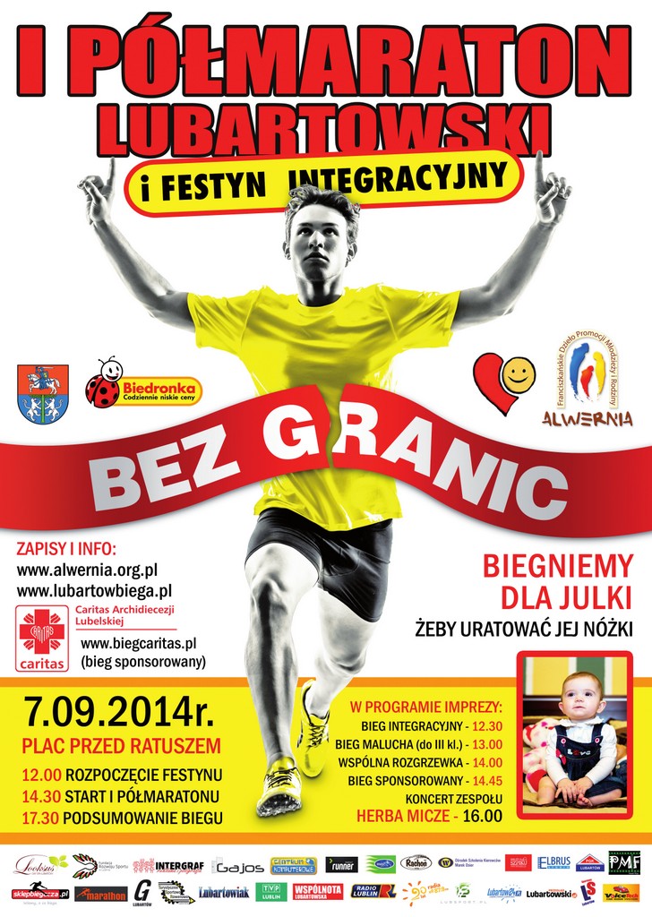 7 września 2014r. w ramach I Półmaratonu Lubartowskiego i Festynu Integracyjnego organizujemy trzy biegi towarzyszące.
